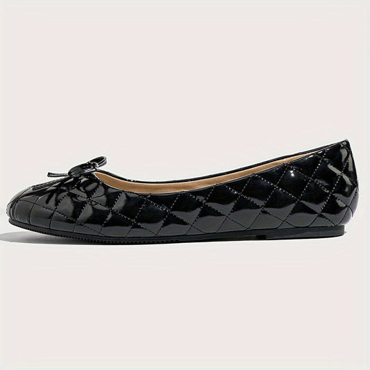 Lotte | Dames zwarte ballerina's met gestikt ontwerp en strikdetail