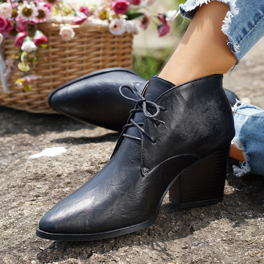 Loes | Stijlvolle effen kleur laarzen met vetersluiting en blokhak