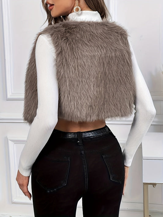 AanbiedingEvelien | Pluizige bodywarmer in effen kleur