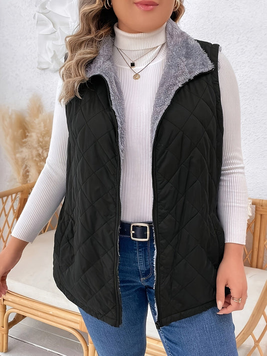 AanbiedingEvelien | Plus size pluche gevoerde ritsvest