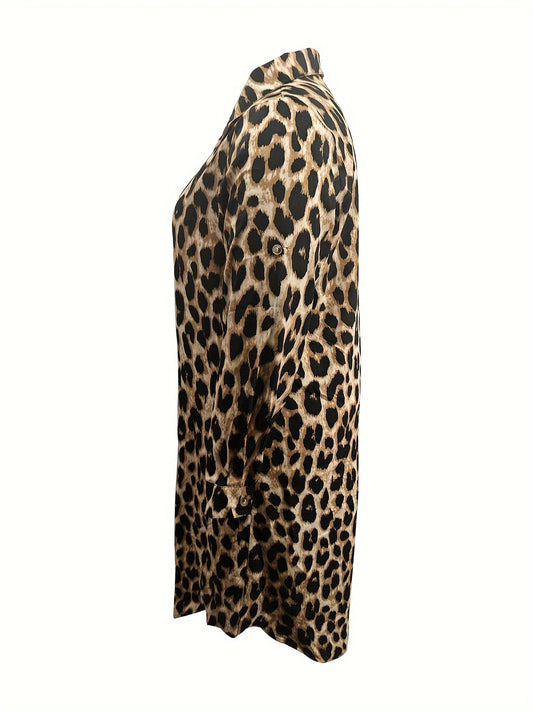 Elena | Casual luipaardprint overhemdjurk met lange mouw