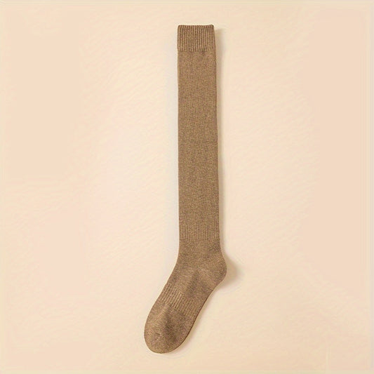 Elin | Zachte, dikke, effen kleur kniekniekousen met geribbelde details