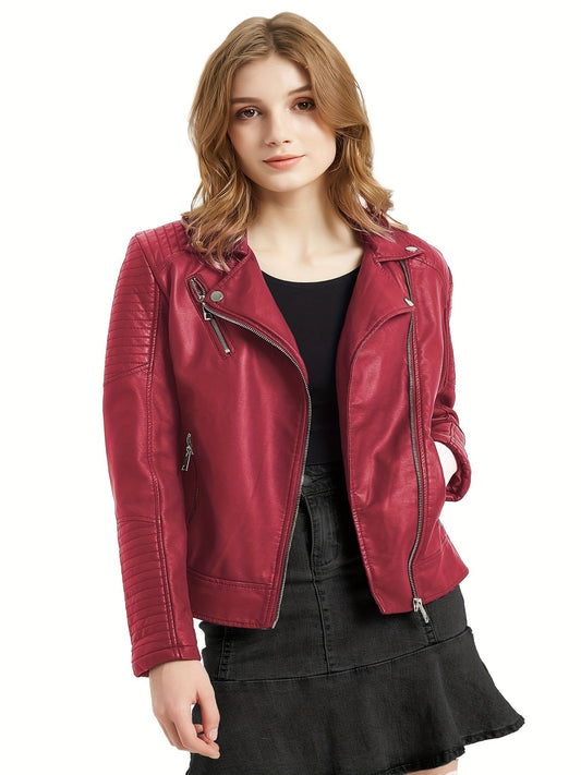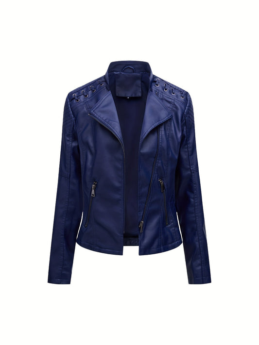 Noa | Stijlvol faux leren bikerjack met opstaande kraag en zakken
