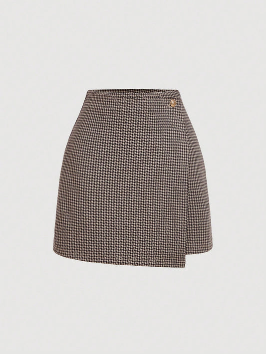 A-lijn minirok met pied-de-poule print en hoge taille