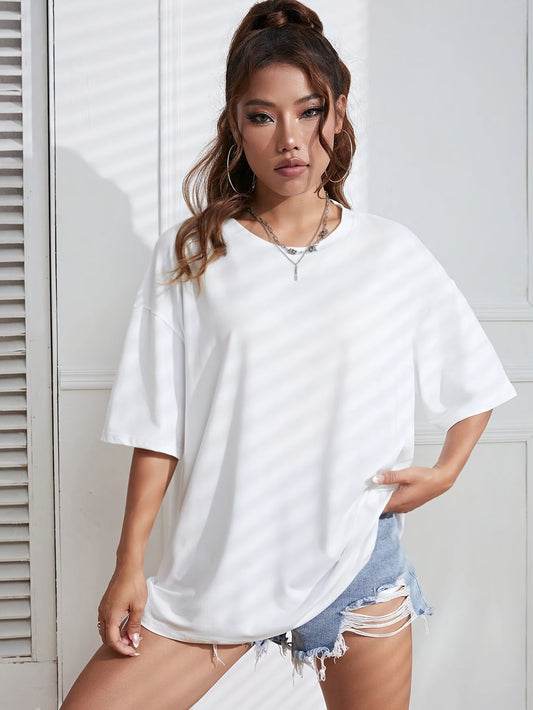 Sara | Sportief Y2K T-shirt in effen kleur met ronde hals en losse korte mouwen