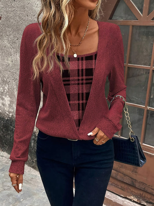 AanbiedingSophie | Lange mouwen top effen patroontje