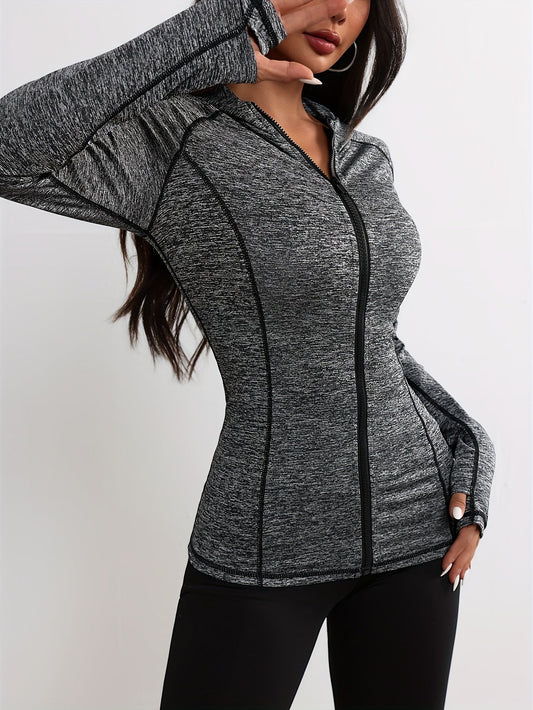 Emma | Effen kleur casual sportjack met lange mouw en volledige rits