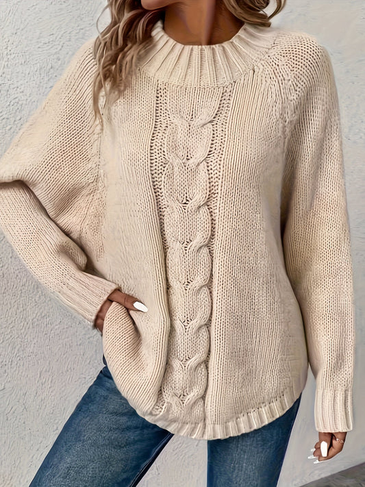 Lotte | Kabelgebreide trui met ronde hals en lange mouwen