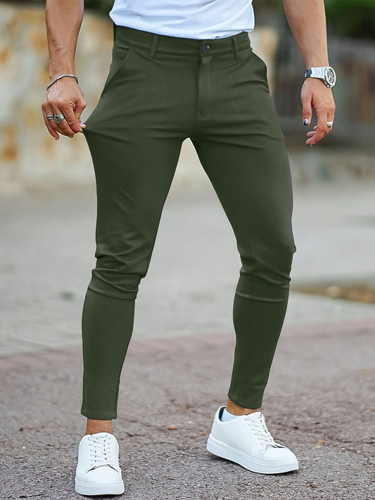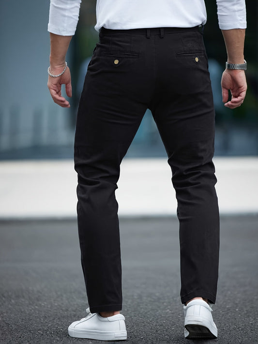 Lucas | Skinny-fit herenbroek met ritsdetail in effen kleur