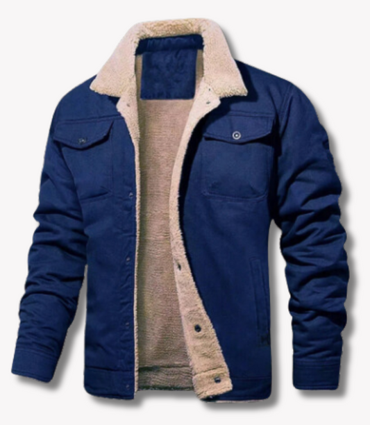Stijn | Warm fleece jack met imitatieleer in effen kleur