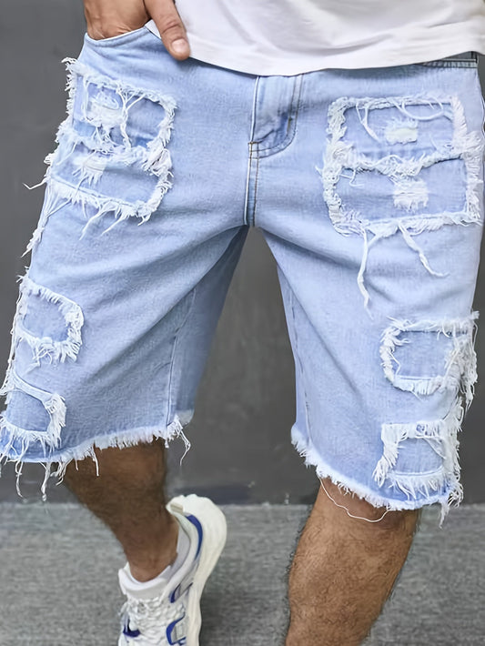 Daan | Kniehoogte herenshorts van spijkerstof met scheuren