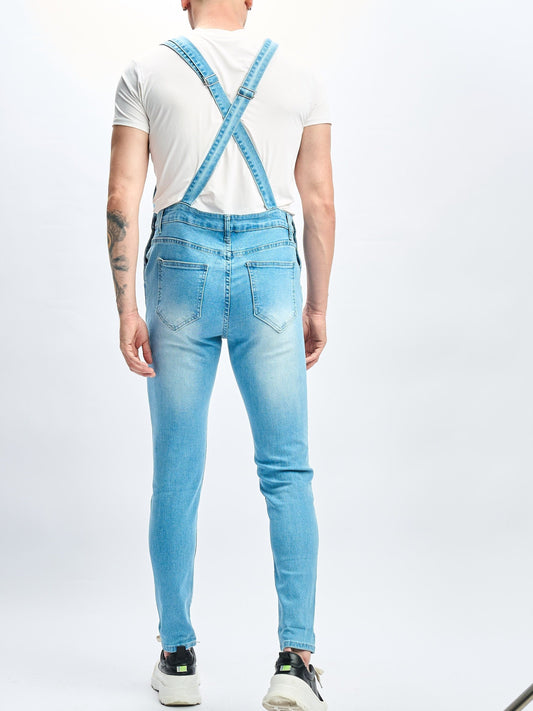 Daan | Lichtblauwe slim-fit denim overall met stretch