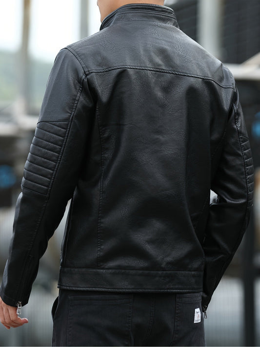 Liam | Heren trendy kunstlederen jas met ritssluiting & kraag