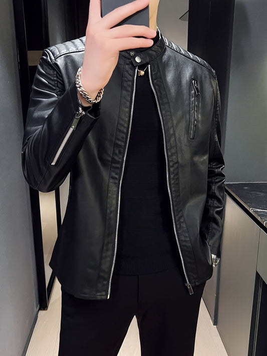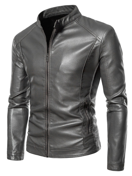 Jelle | Stijlvol PU leren heren motorjack met zakken
