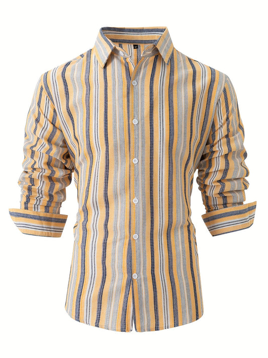 Jasper | Gestreept katoenen linnen herenoverhemd