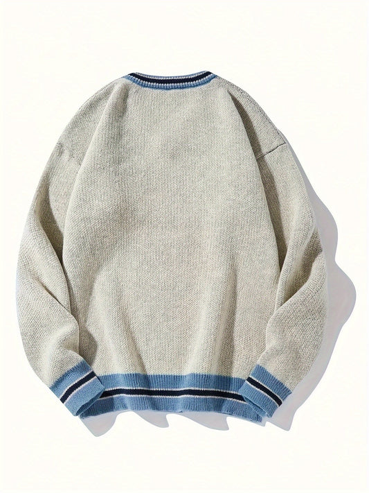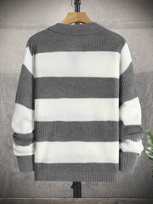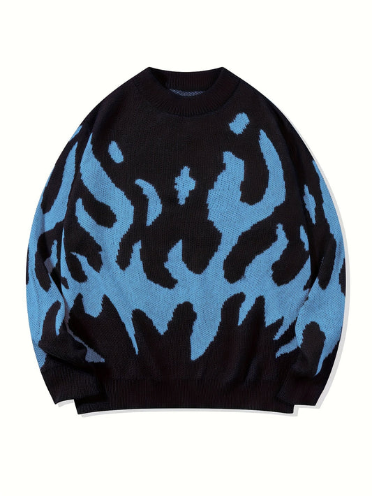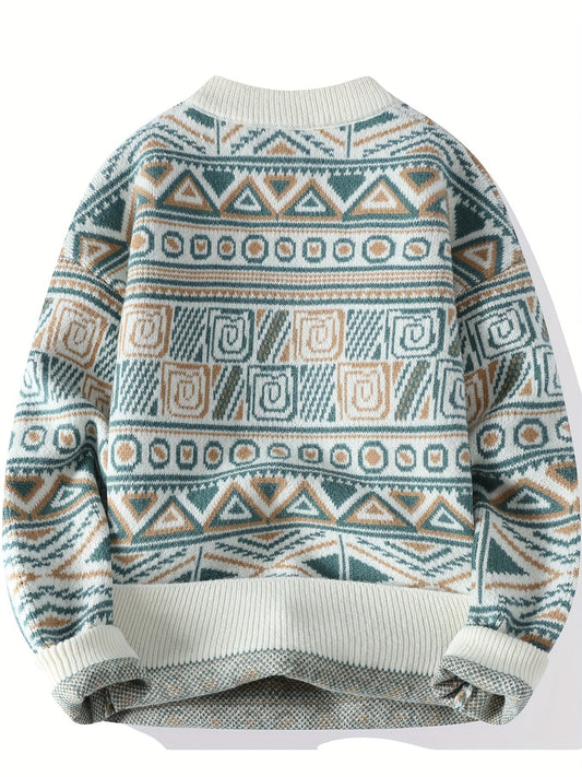 Lars | Warme gebreide herentrui met kleurblokken en golfpatroon