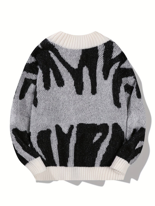 Lars | Stijlvolle gebreide pullover met contrasterende kleur en warm geometrisch patroon
