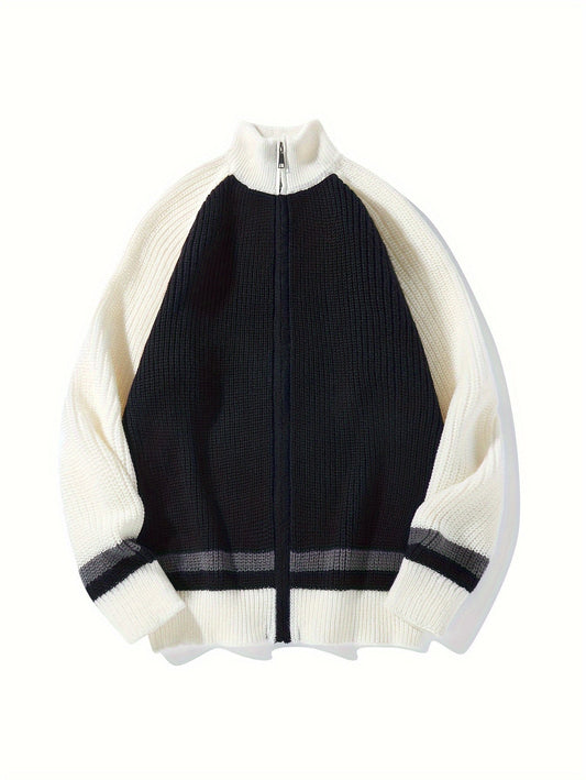 Lars | Gebreide heren cardigan met kleurblok en rits
