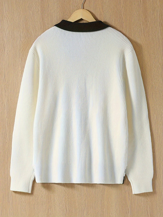 Luuk | Casual gebreide V-hals trui met lange mouw in zachte polyester stof