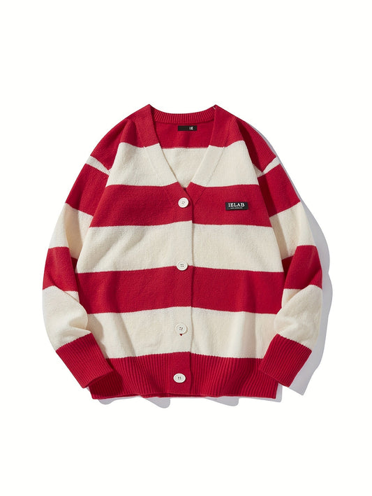 Jelle | Gestreept gebreid vest met ronde hals en knoopsluiting