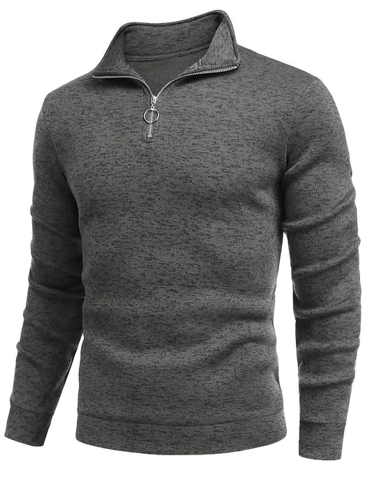 Niels | Effen gebreide trui met halve rits en col