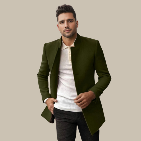 Floris | Kaki lange jas met zakelijke stijl