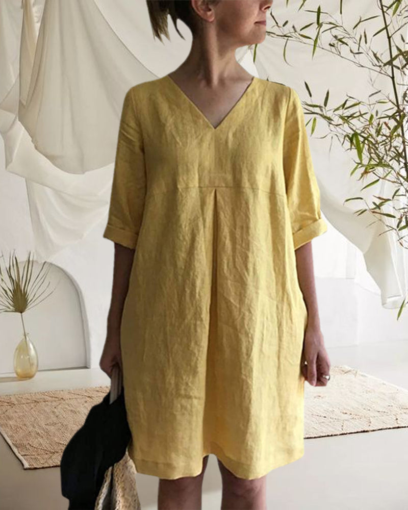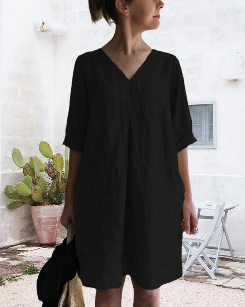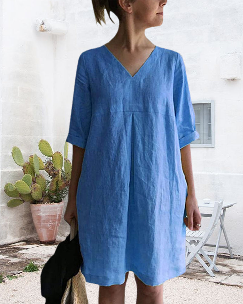 Ervaar de zorgeloze elegantie van de Femke luchtige tuniekjurk, met een stijlvolle V-hals voor een modieuze en casual uitstraling.