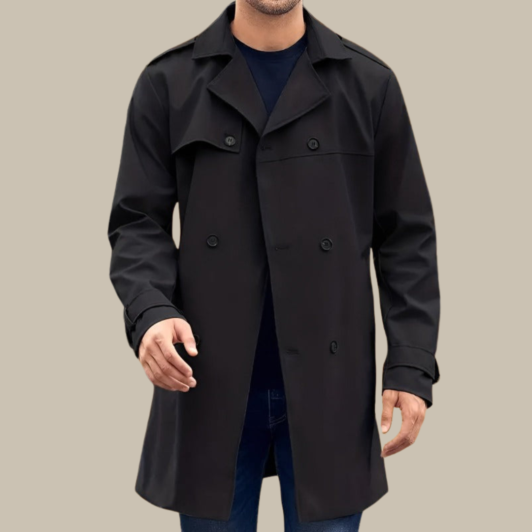 Ervaar tijdloze elegantie met de Lars lange herenjas, een stijlvolle toevoeging aan elke outfit.